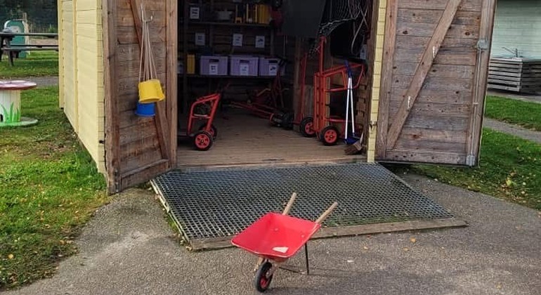 Här finns allt som behövs för vår verksamhet. Inomhus har vi jättefina lokaler med flera rum som passar alla olika sorters lekar – rollek, motoriska lekar som klättra och röra sig, bygg- och konstruktionslekar, skapande och massa mer. Vi anpassar vårt material utifrån barngruppens behov och intressen.