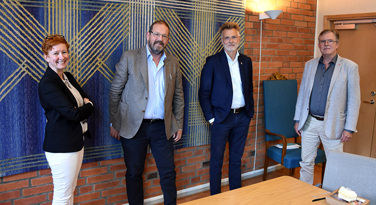 Länsstyrelsen besökte Herrljunga. Från vänster kommundirektör Ior Berglund, kommunalrådet Gunnar Andersson, landshövding Anders Danielsson, samt kommunalrådet Mats Palm.