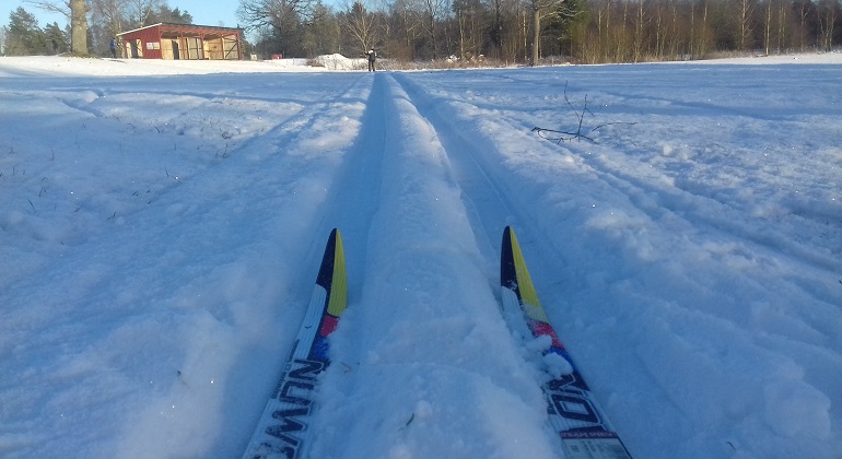 - Skidspår har spårats på Hudene golfbana på natursnö.