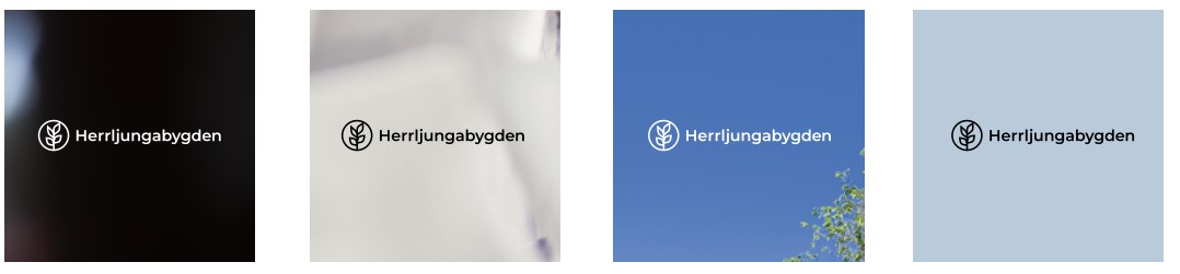 En logotyp behöver vara flexibel för att kunna användas i tryckta applikationer, digitala kanaler och fysiska miljöer. Logotypen ska fungera väldigt smått ända upp till stora skyltar. Eftersom namnet Herrljungabygden är ett långt ord behöver vi ibland kunna använda andra varianter av logotypen för att fungera i exempelvis sammanhang där de ska vara små. Flexibilitet och omdöme är det som får råda vad gäller vilken variant som passar.